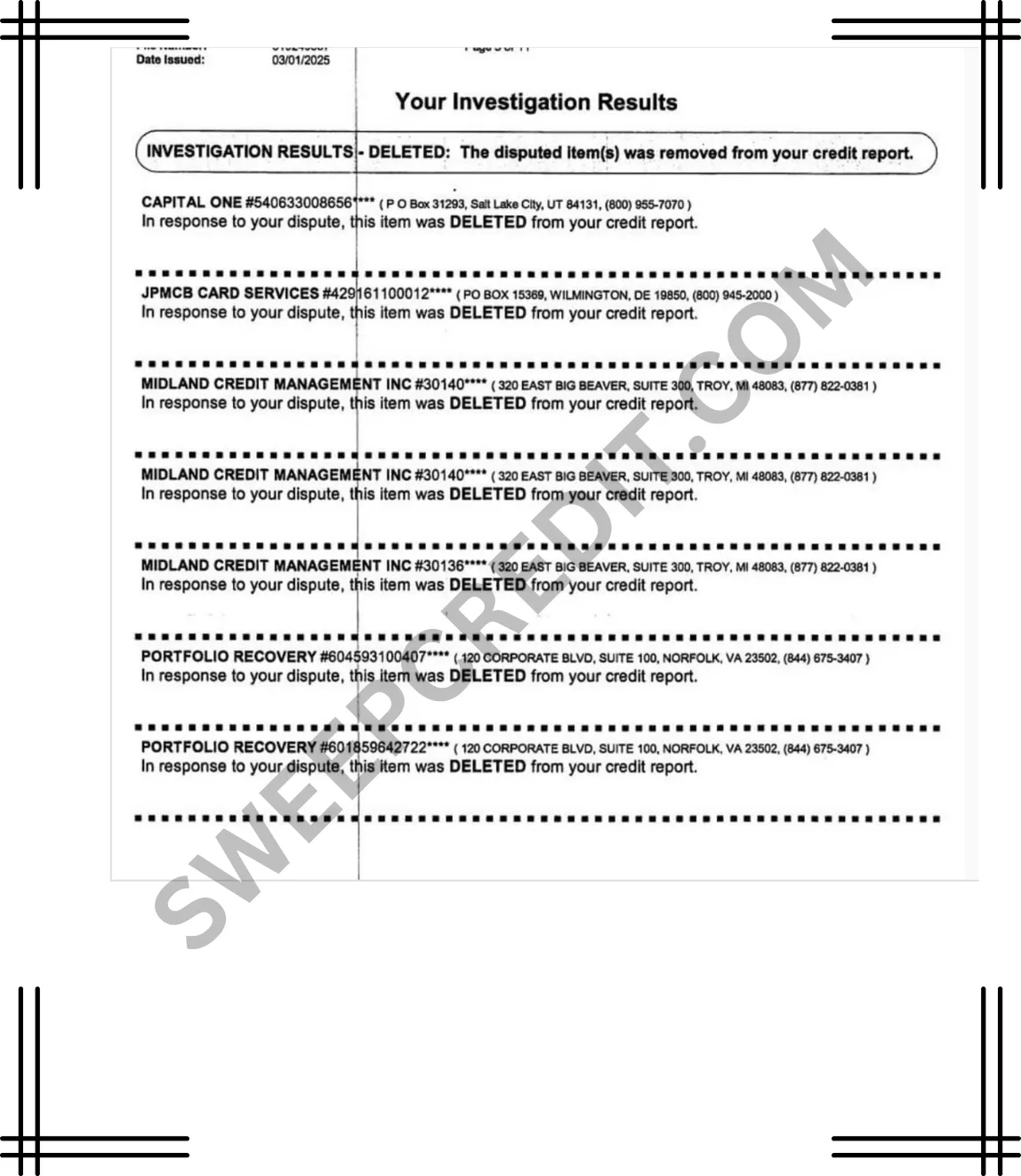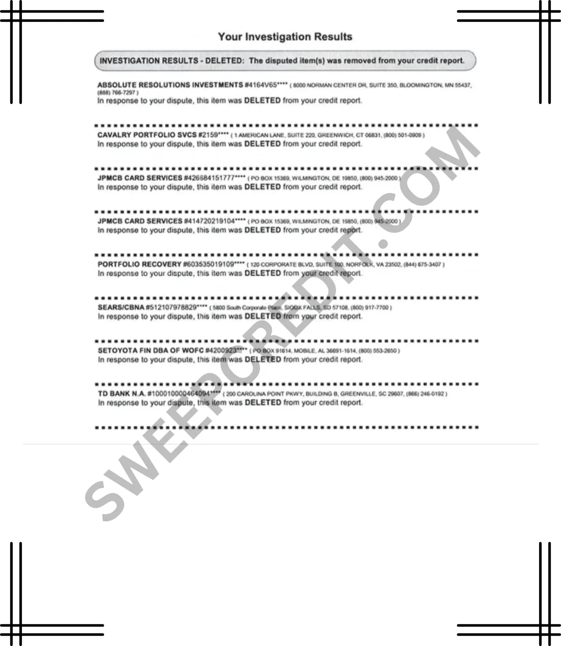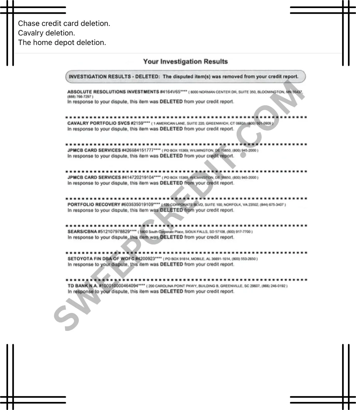 SWEEP CREDIT has helped Hundreds CLEAN their credit