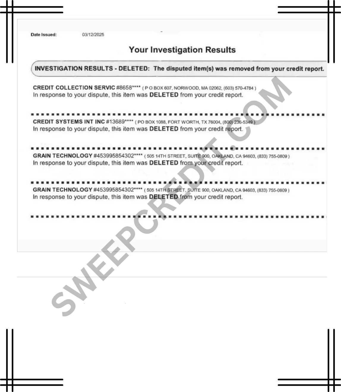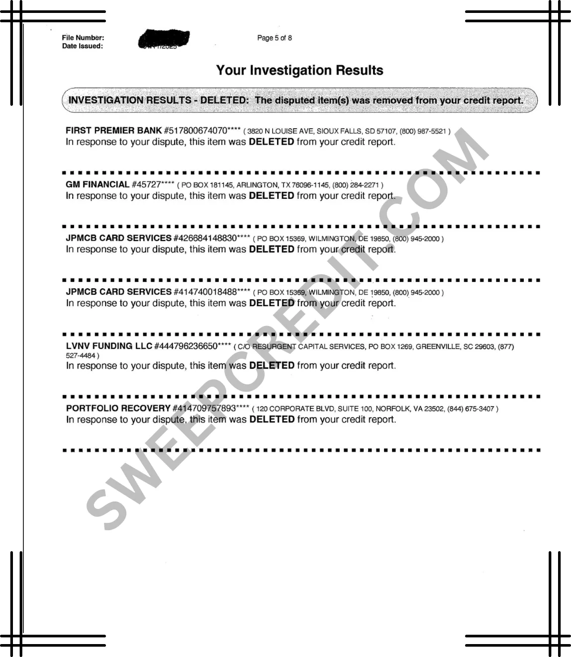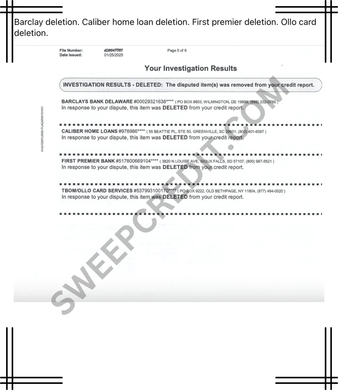 SWEEP CREDIT has helped Hundreds CLEAN their credit